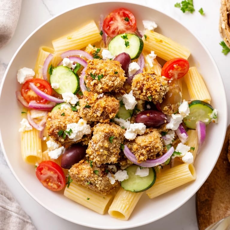 Chicken thighs cut into pieces stay juicier through the frying process if you prefer dark meat. For a lighter version, you can bake the coated chicken pieces at 425°F for about 18 minutes, flipping halfwaythough you miss some of that golden crispness. The pasta can easily be swapped for orzo or even rice for a gluten-free option, just adjust cooking time accordingly.