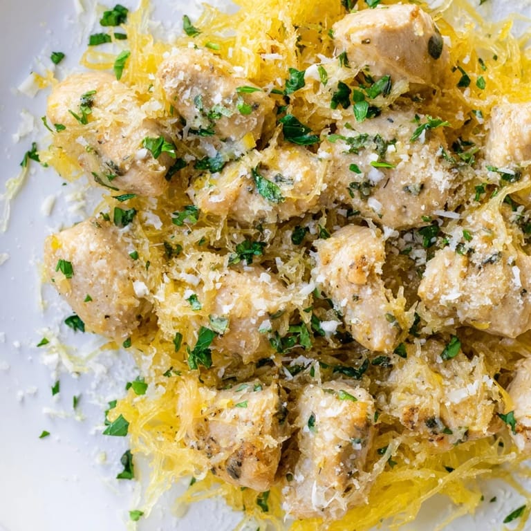 The spaghetti squash can be roasted up to three days in advance and kept in the refrigerator, which makes this recipe feel manageable even on busy weeknights. When you're ready to eat, just give the strands a quick reheat in the microwave while you cook the chicken, and nobody will know you didn't do everything in one go.